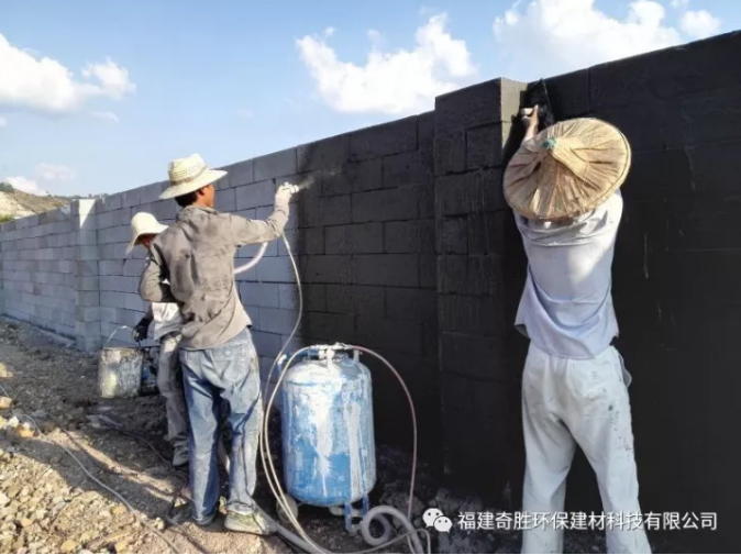 Figure 4: Directly spray the special mortar for Yanan brand aerated bricks